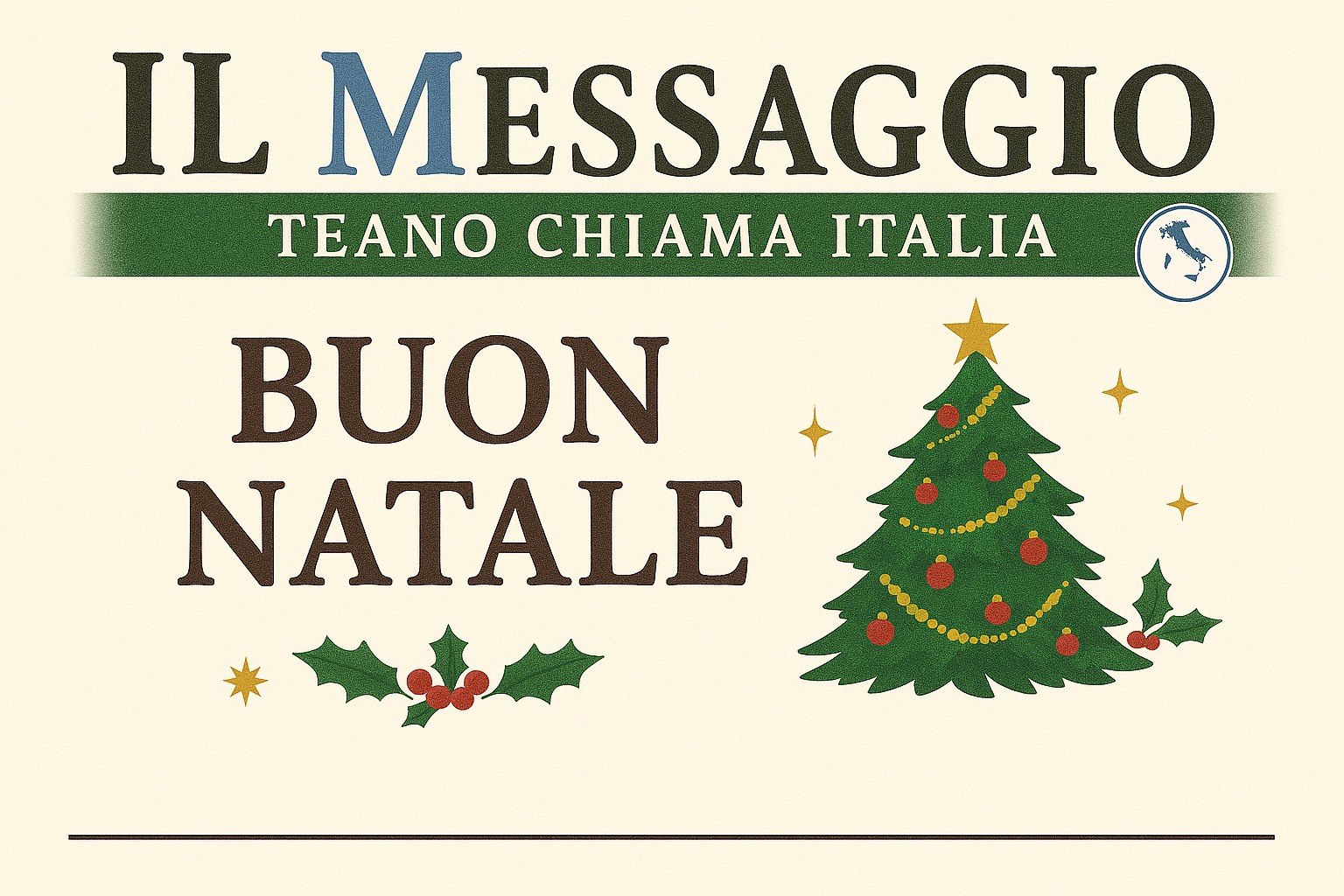 La redazione porge a tutti i lettori de “Il Messaggio – Teano chiama Italia“ i più sentiti auguri di un Sereno Natale.