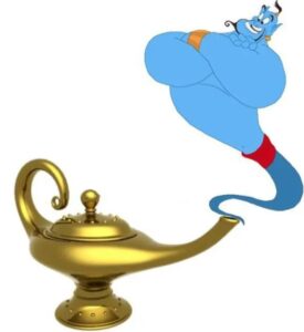 E, detto questo, il povero genio se ne tornerebbe sconsolato nella sua lampada, in attesa del prossimo strofinio.