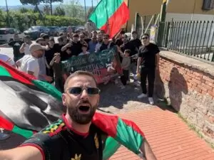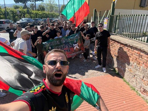 I 100 tifosi sidicini rimasti fuori l’impianto, oltre a tifare incessantemente, in maniera rumorosa e goliardica, accendendo anche svariati fumogeni colorati rosso-verdi, non si sono macchiati di ben che minima azione violenta o che potesse dare la sensazione di pericolo.
