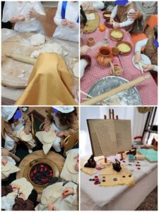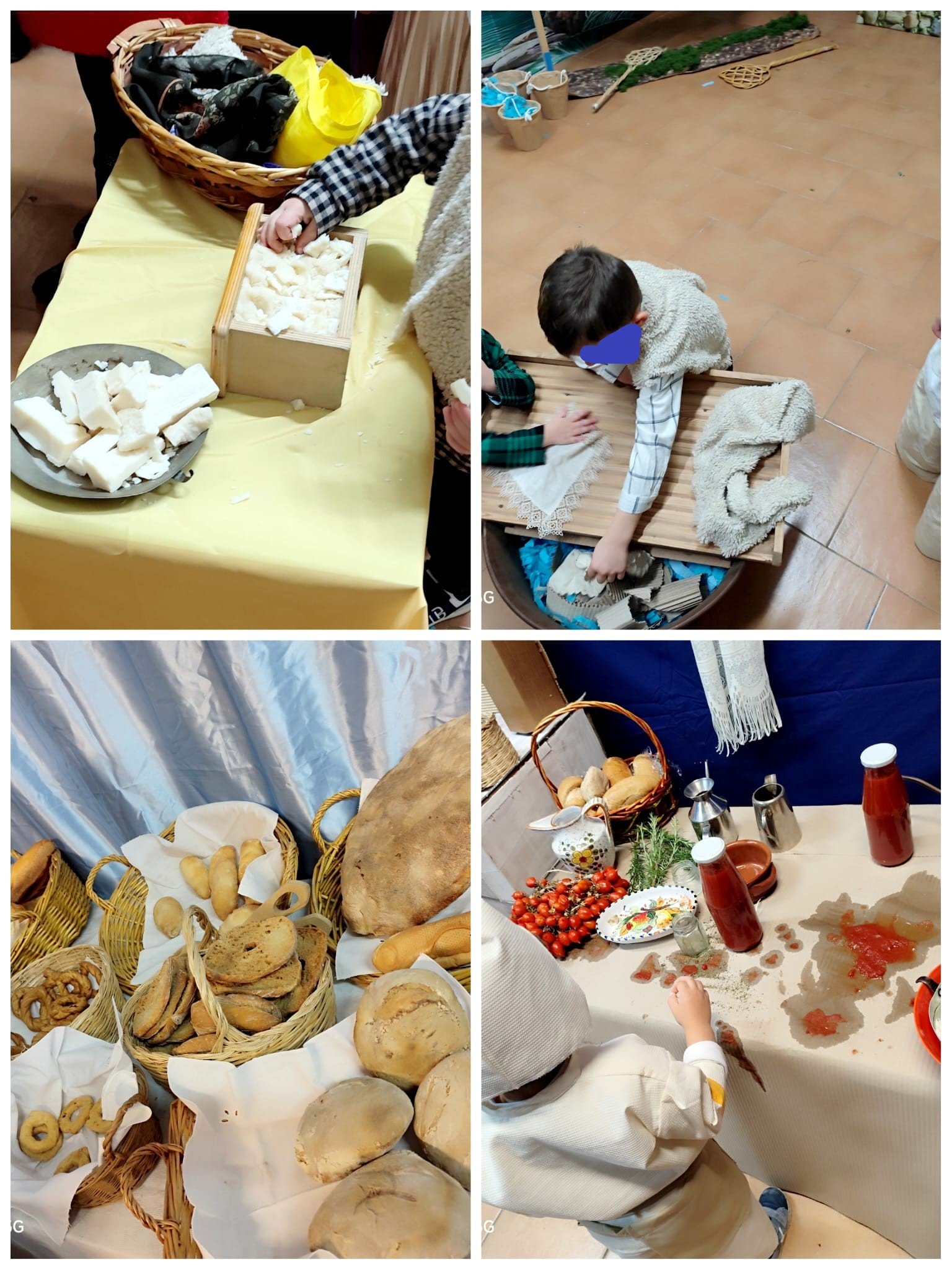 In punta di piedi si entrava nelle varie aule e tra profumi di spezie, caffè, sapone, vino, pane, pizze, zuppe si scopriva il magnifico mondo dei bambini, un mondo fatto di giochi e divertimento. In ogni angolo del borgo si respirava un’aria magica. La scenografia in ogni bottega era impeccabile, curata nei minimi dettagli per trasportare i visitatori in un’altra epoca. Questo risultato straordinario è stato possibile grazie al lavoro di tutti: insegnanti, genitori e collaboratori hanno unito le forze affinché ogni spazio fosse perfetto. La vera sorpresa è stata vedere come i piccoli abbiano dato vita a queste scene: con una serietà, un impegno e una dedizione tali da sembrare piccoli maestri d’altri tempi. Eppure, nei loro sguardi brillava la verità più pura e il segreto più bello: stavano solo giocando… Il percorso era così articolato: