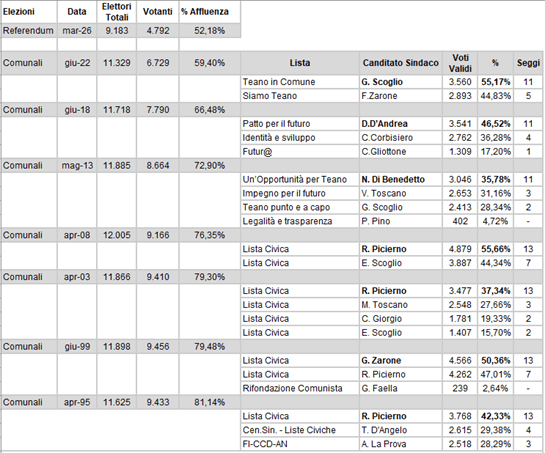 - Il numero di elettori a Teano negli ultimi 30 anni: 367